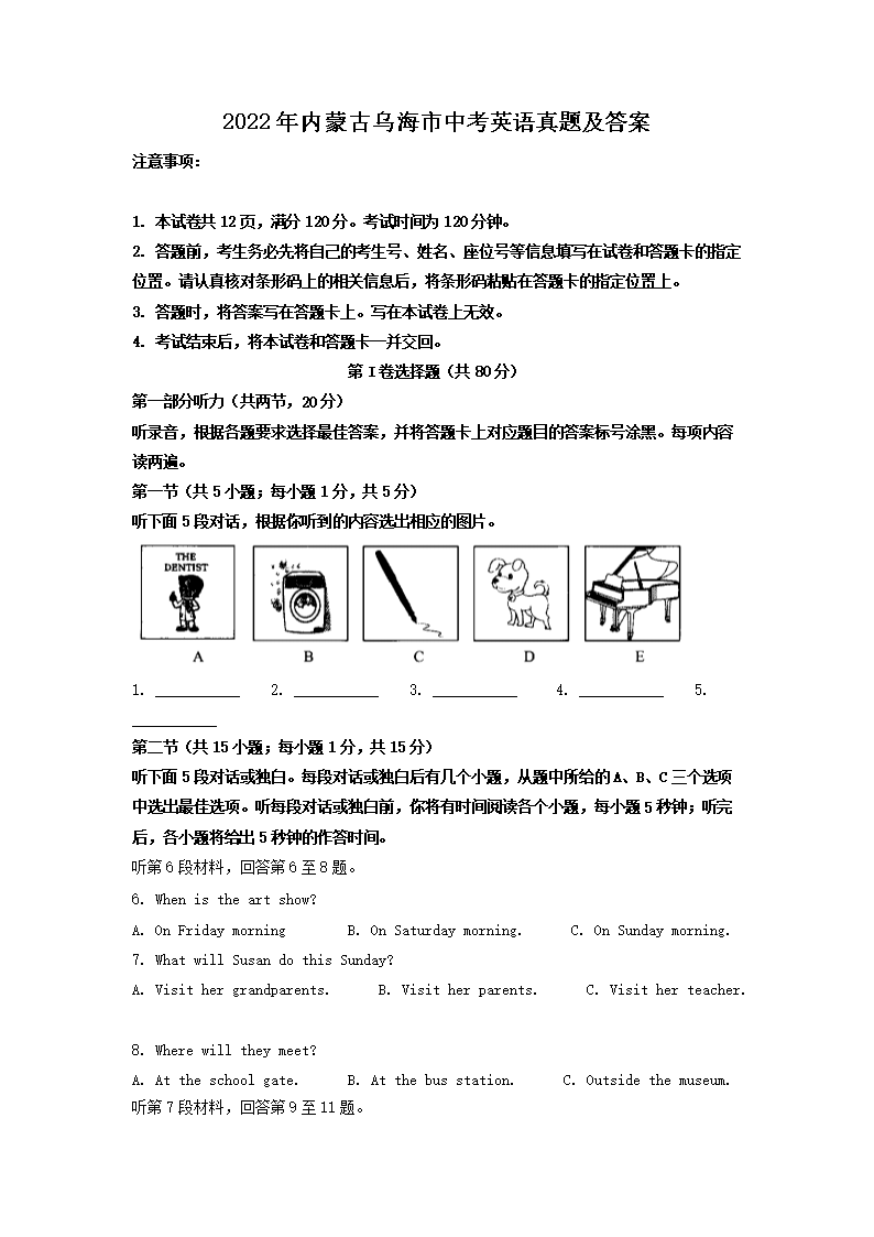 2022年内蒙古乌海市中考英语真题及答案(Word版)06-07