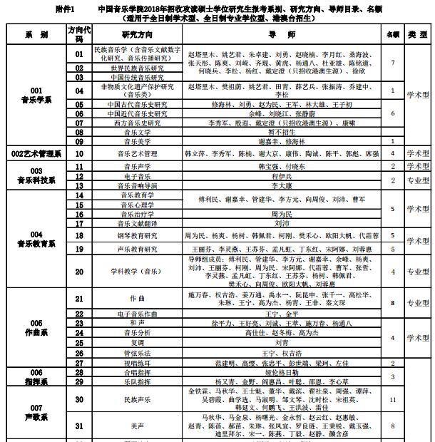 中国音乐学院全日制硕士2018考研专业目录