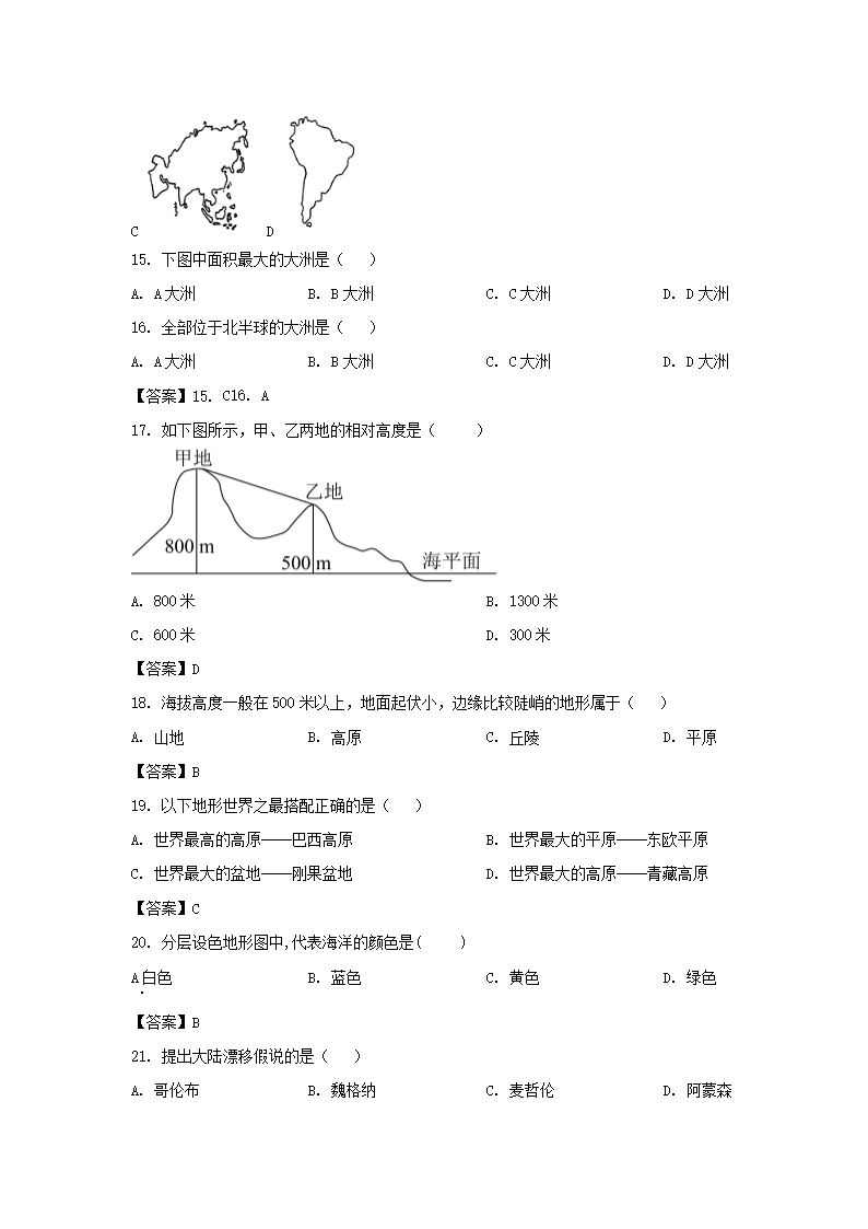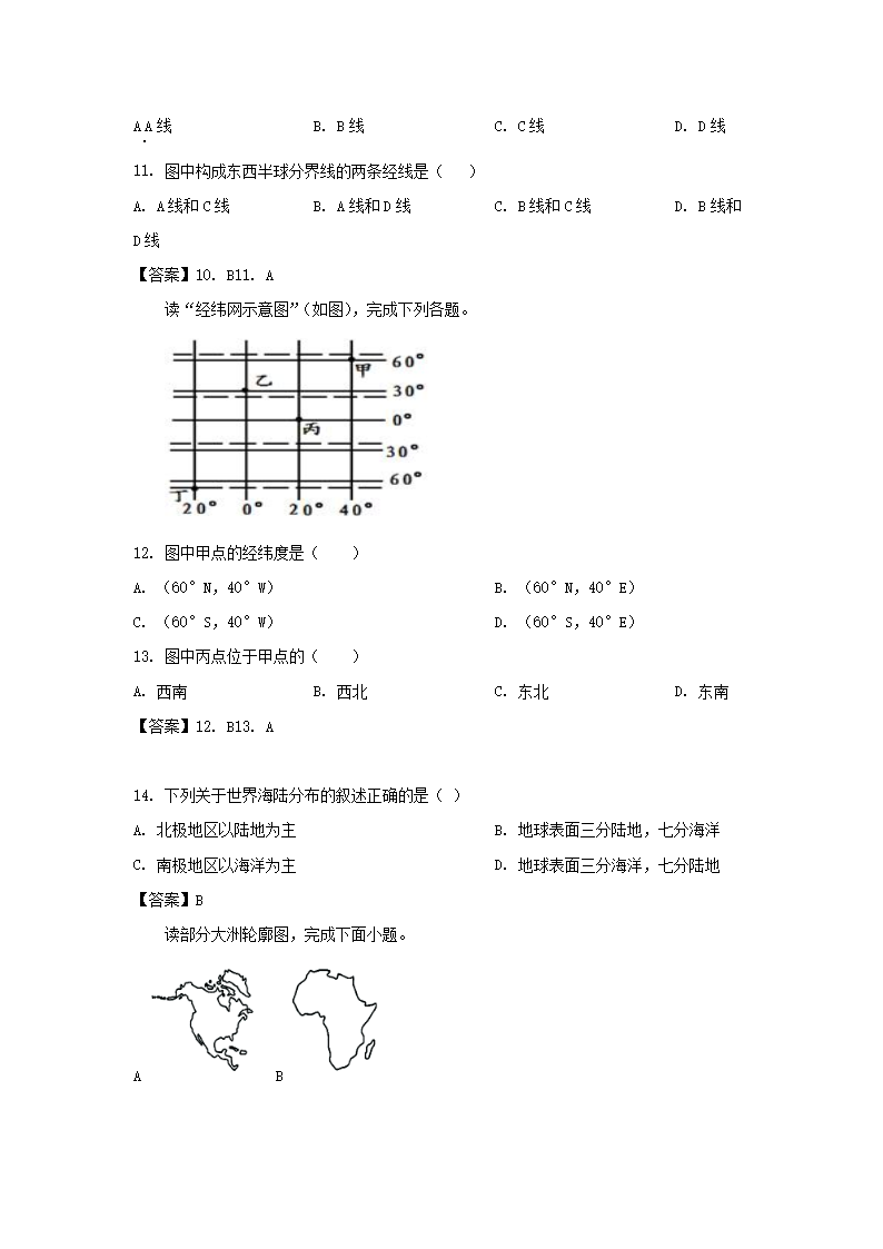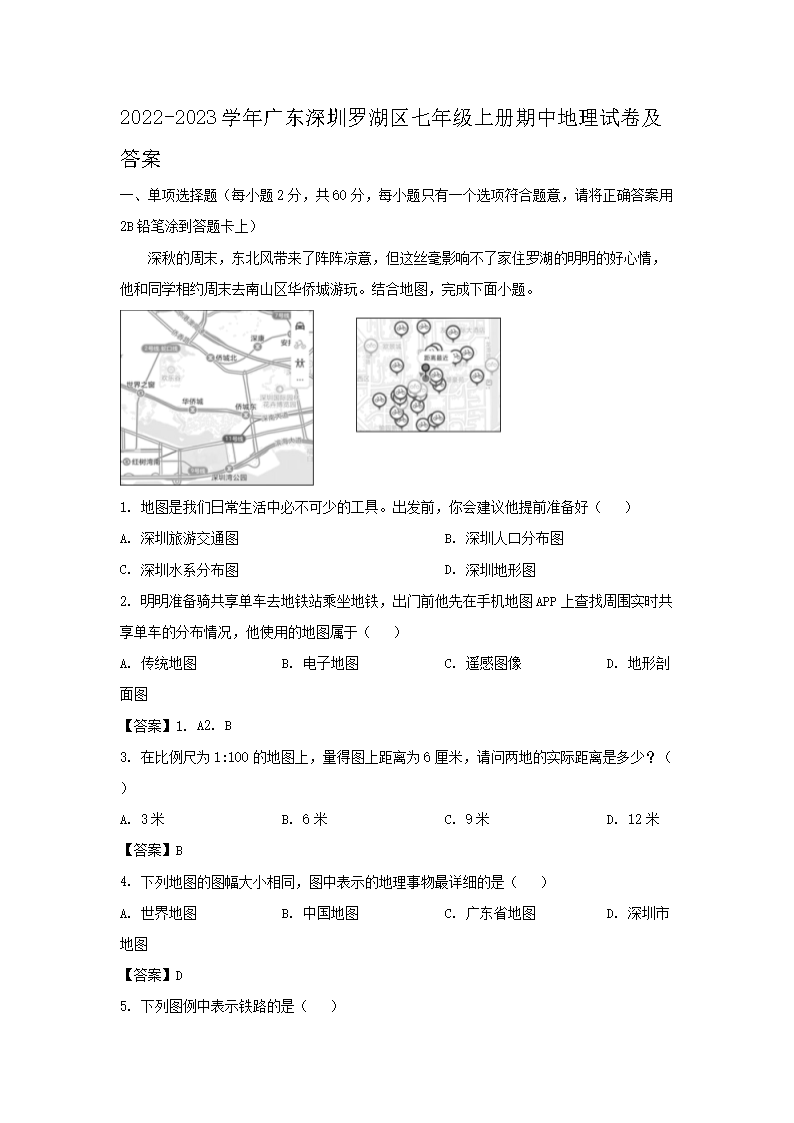 2022-2023学年广东深圳罗湖区七年级上册期中地理试卷及答案(Word版)09-21