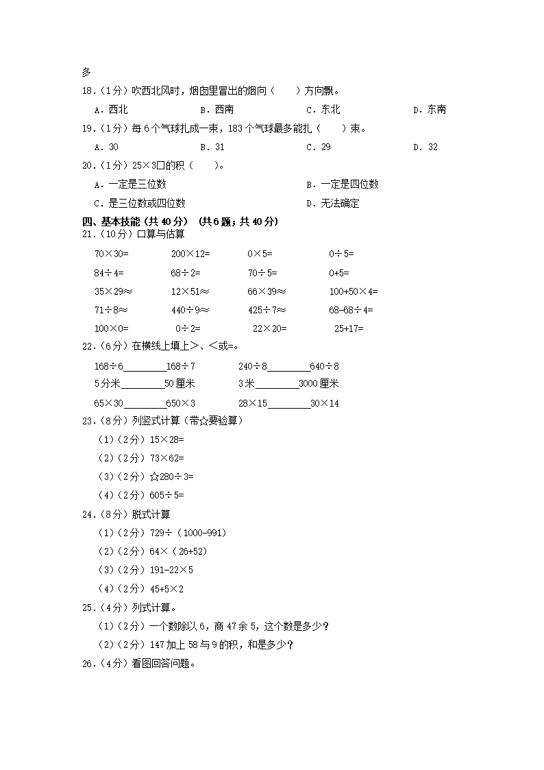 2022-2023学年浙江省杭州市萧山区三年级下学期期中数学试卷及答案(Word版)09-01