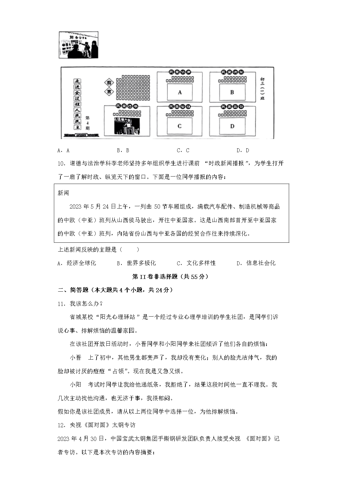 2023年山西朔州中考道德与法治试题及答案(Word版)06-27