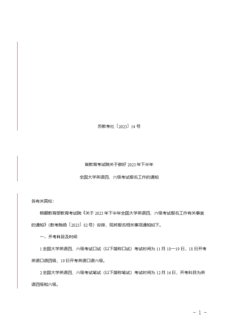江苏2023下半年全国大学英语四六级考试报名工作的通知[9月14日起报考]09-13