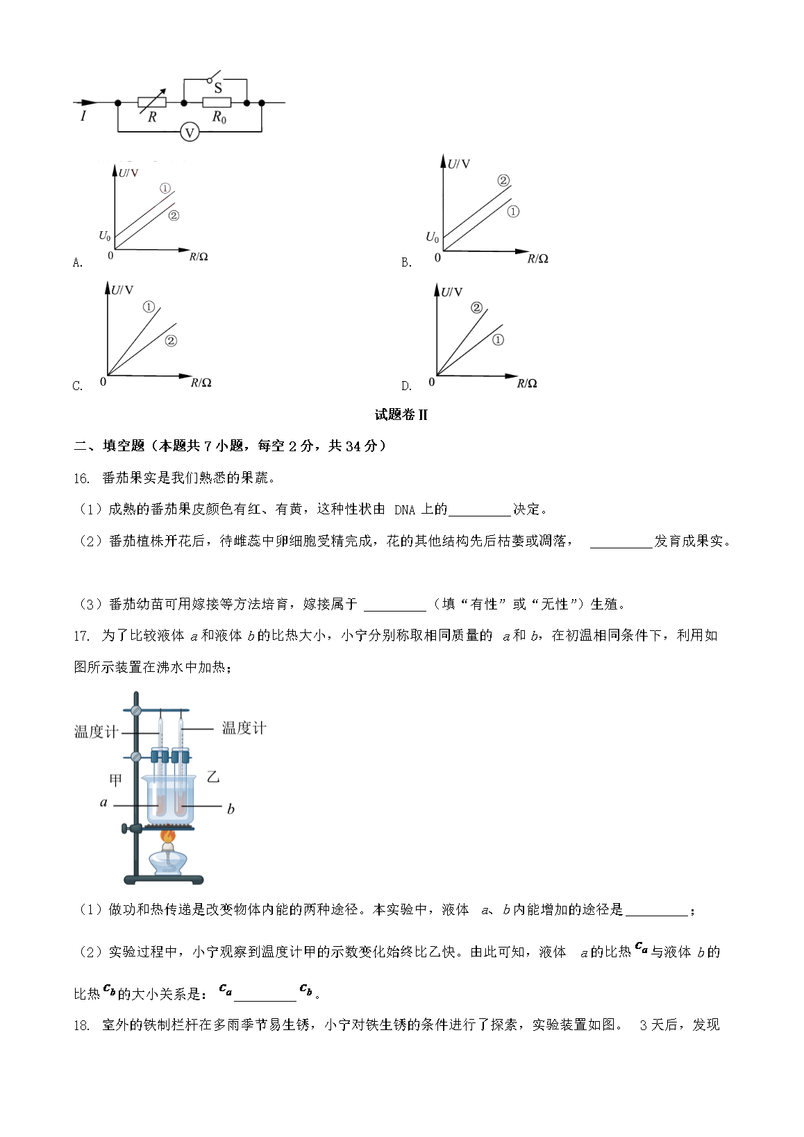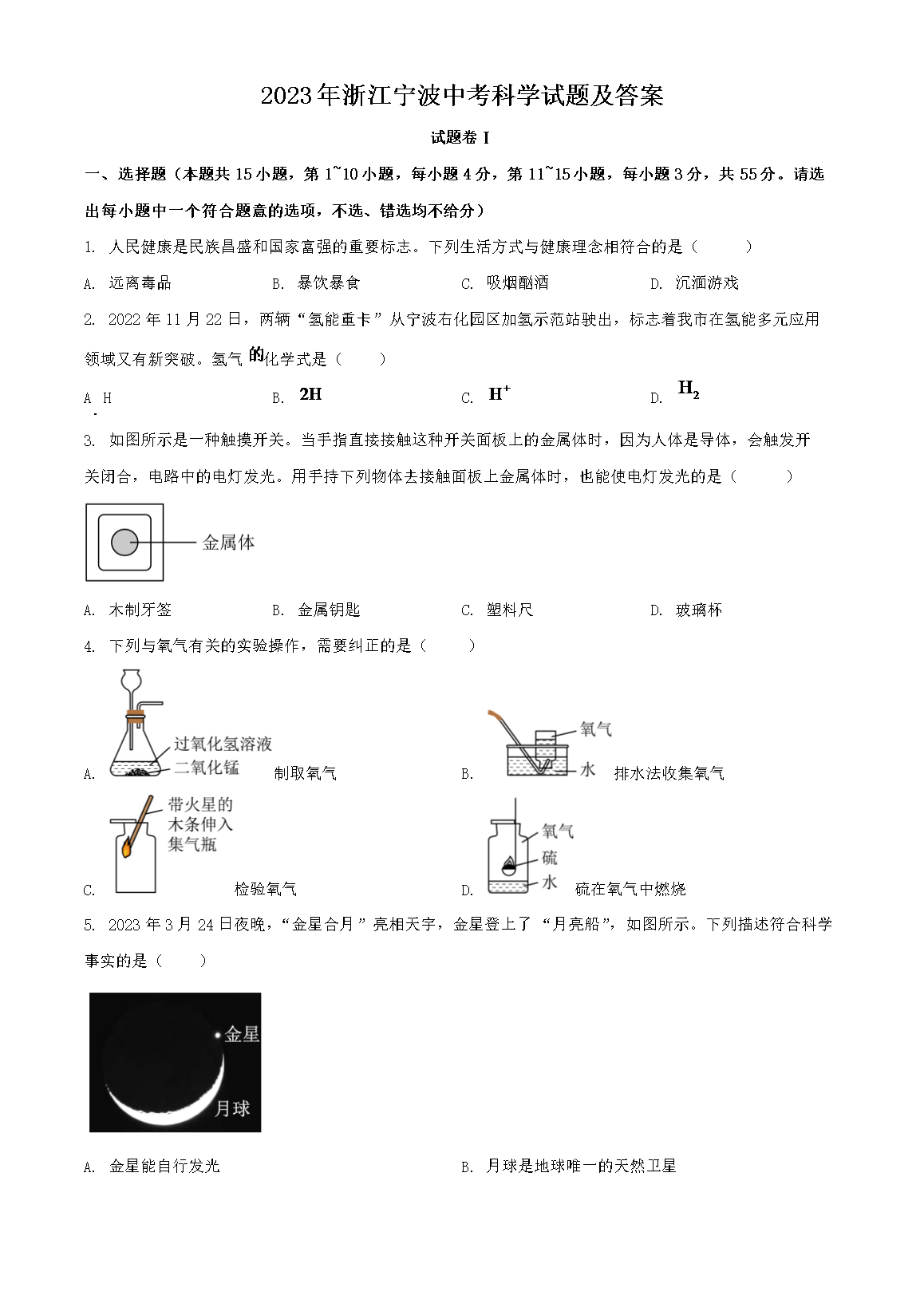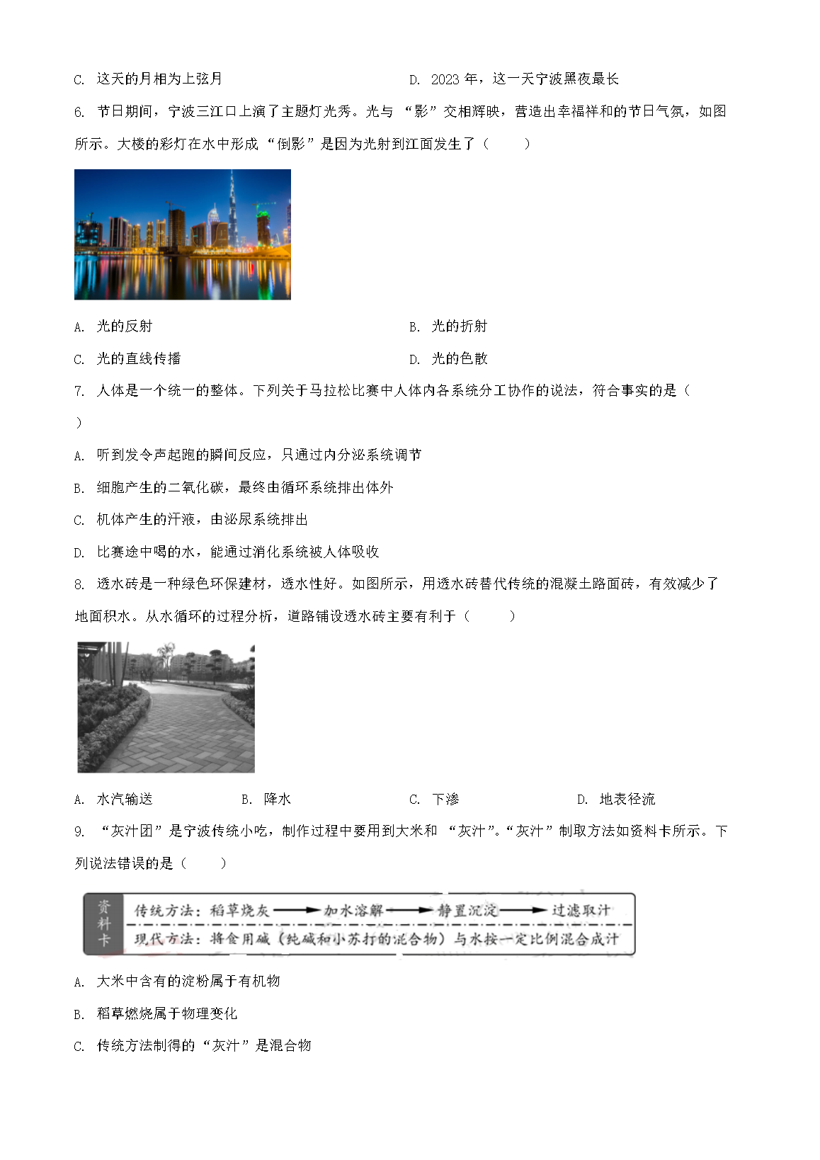 2023年浙江宁波中考科学试题及答案(Word版)07-18