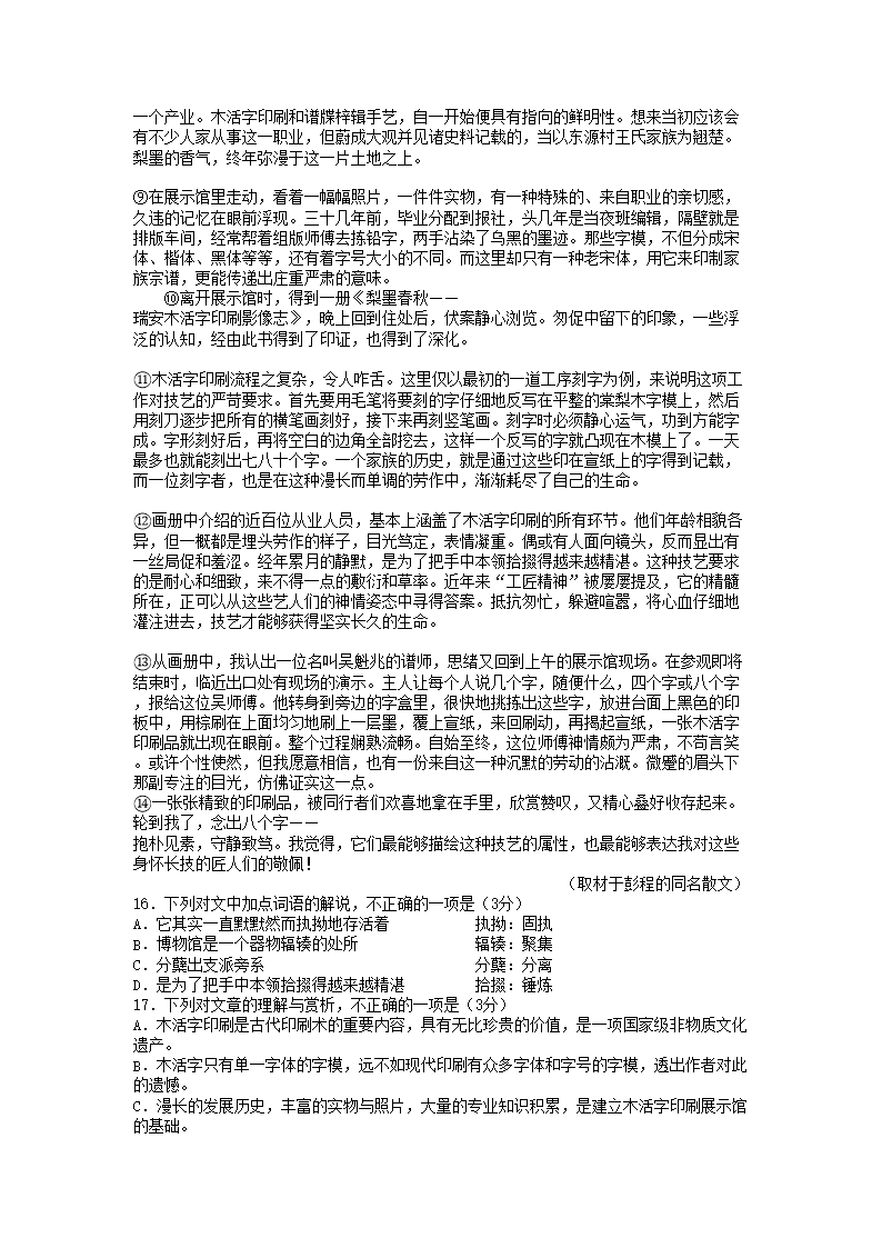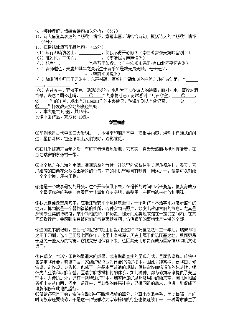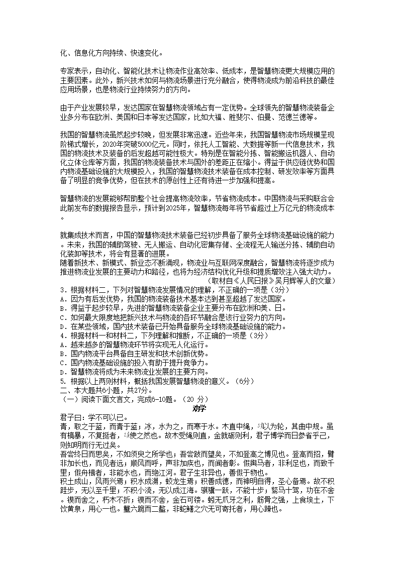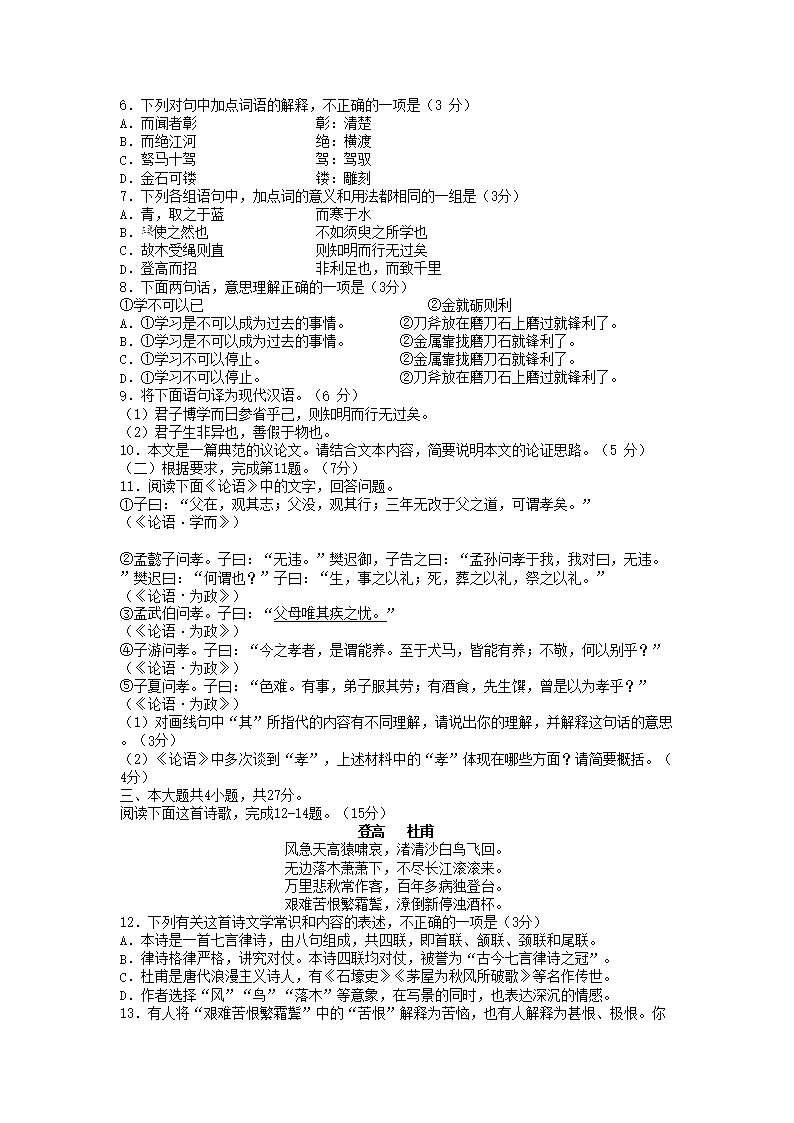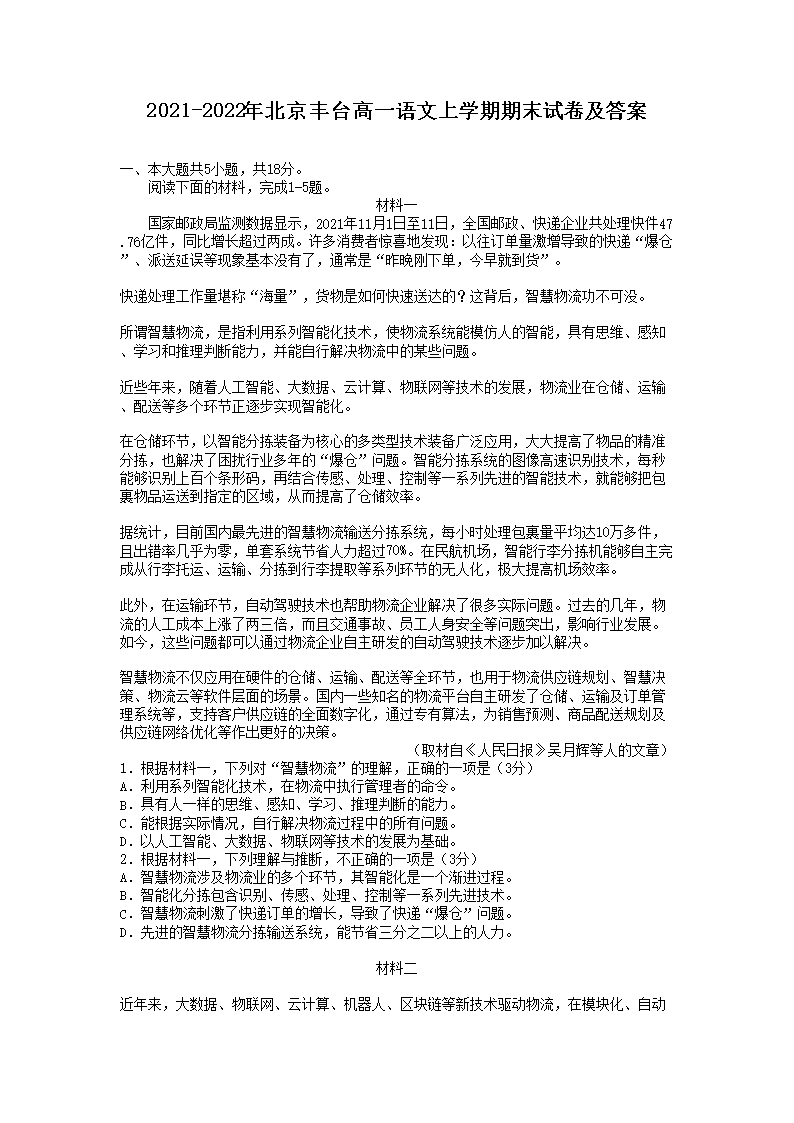 2021-2022年北京丰台高一语文上学期期末试卷及答案(Word版)07-28