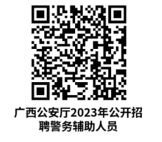 (二)报名方式:网上报名。登录广西壮族自治区公安厅政务网站(www.gazx.gov.cn)、广西壮族自治区公安厅微信公众号点击链接或者扫描公告二维码进入“2023年广西壮族自治区公安厅警务辅助人员招聘网上报名系统”(https://gx.bmpta.com/gongantingfj/index.aspx),选择报考岗位、填写个人相关信息资料,上传报名材料完成报名。