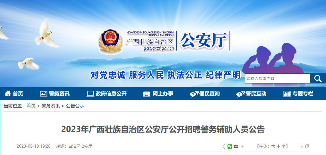 2023年广西壮族自治区公安厅公开招聘警务辅助人员公告05-13