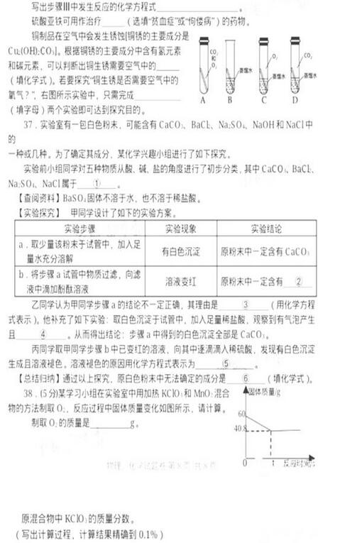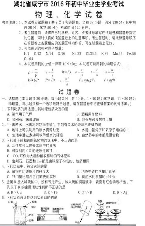 2016湖北咸宁中考化学试题(已公布)04-13