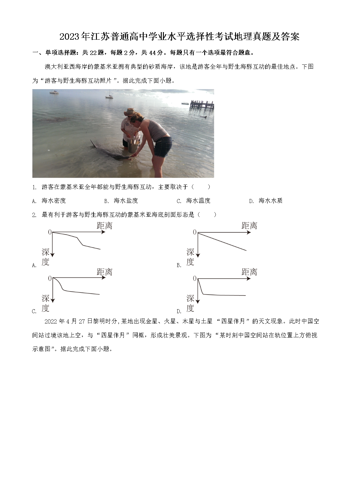 【文档预览】 文档大全网整理发布2023年江苏普通高中学业水平选择性考试地理真题及答案(Word版),前五页预览如下: