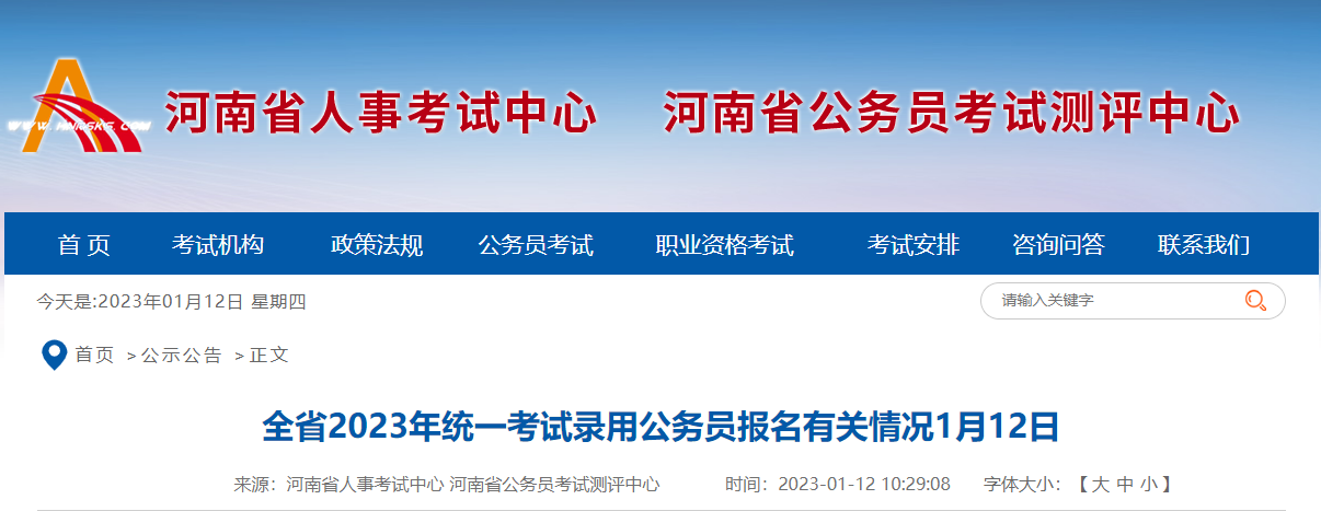 2023年河南公务员报名人数统计:截至1月12日10:0001-12
