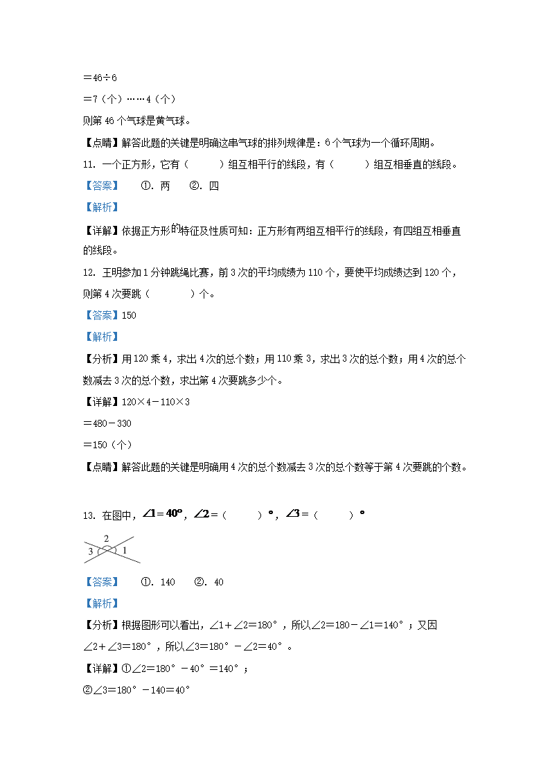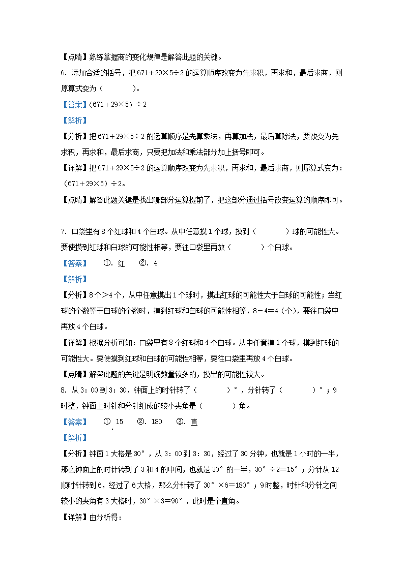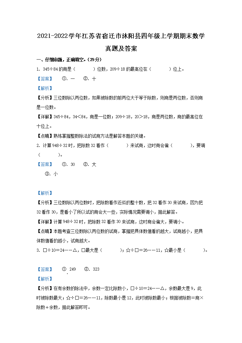 2021-2022学年江苏省宿迁市沐阳县四年级上学期期末数学真题及答案(Word版)07-28