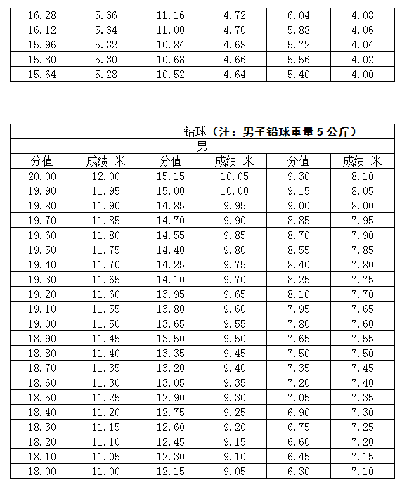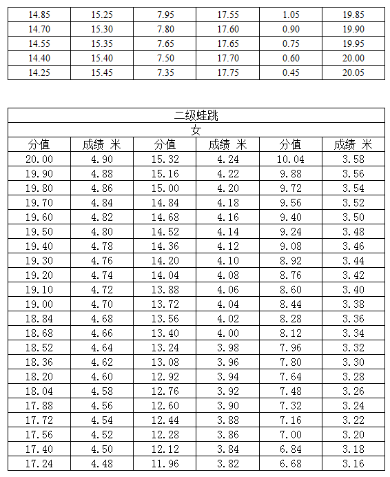 黑龙江2017高考体育专业素质考试内容和评分标准05-19