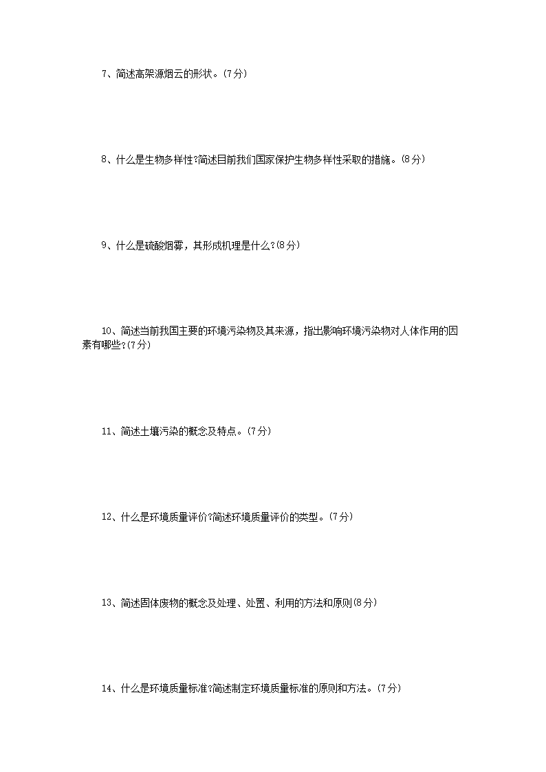 2014年河南师范大学环境保护概论考研真题A卷(Word版)06-05