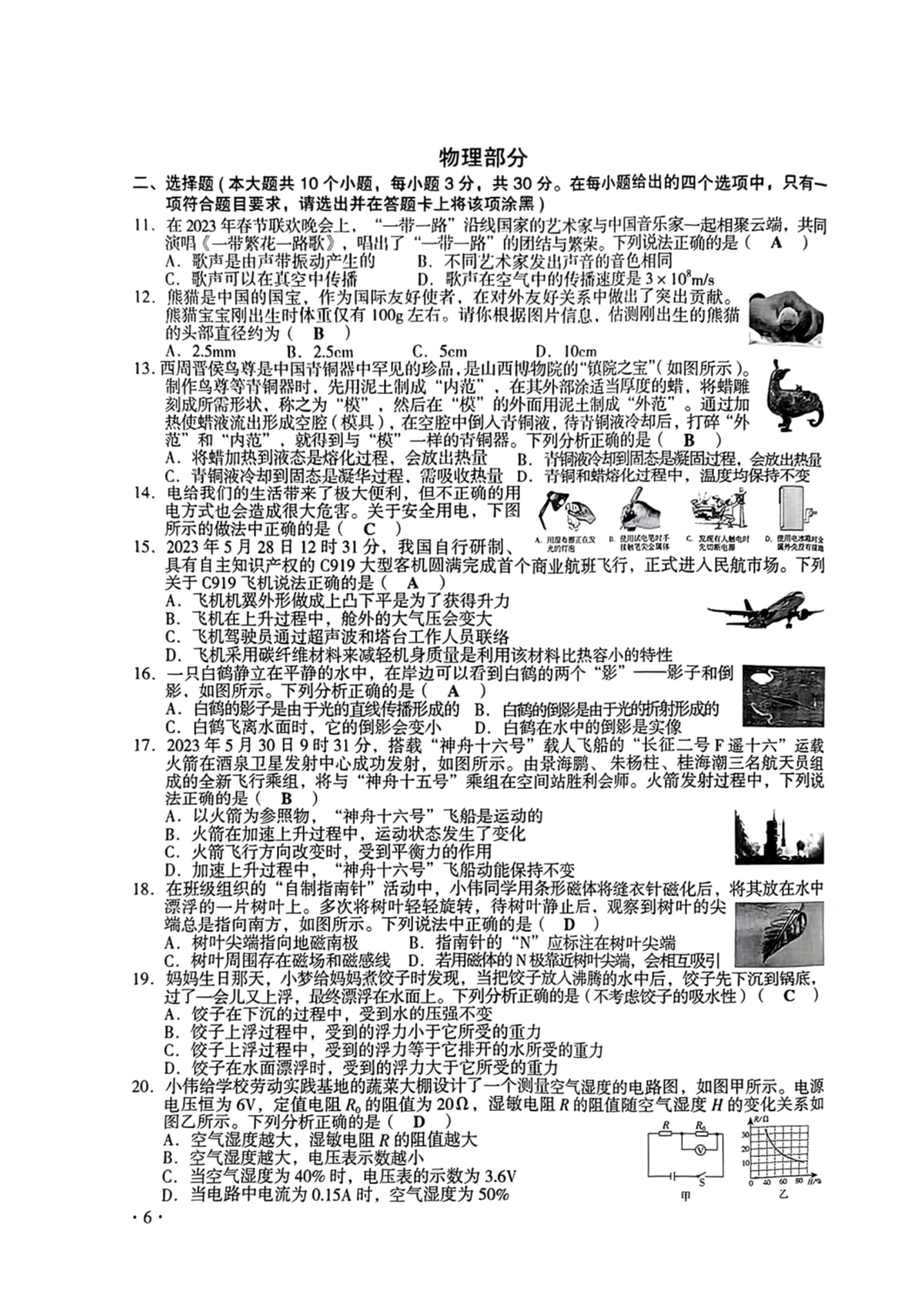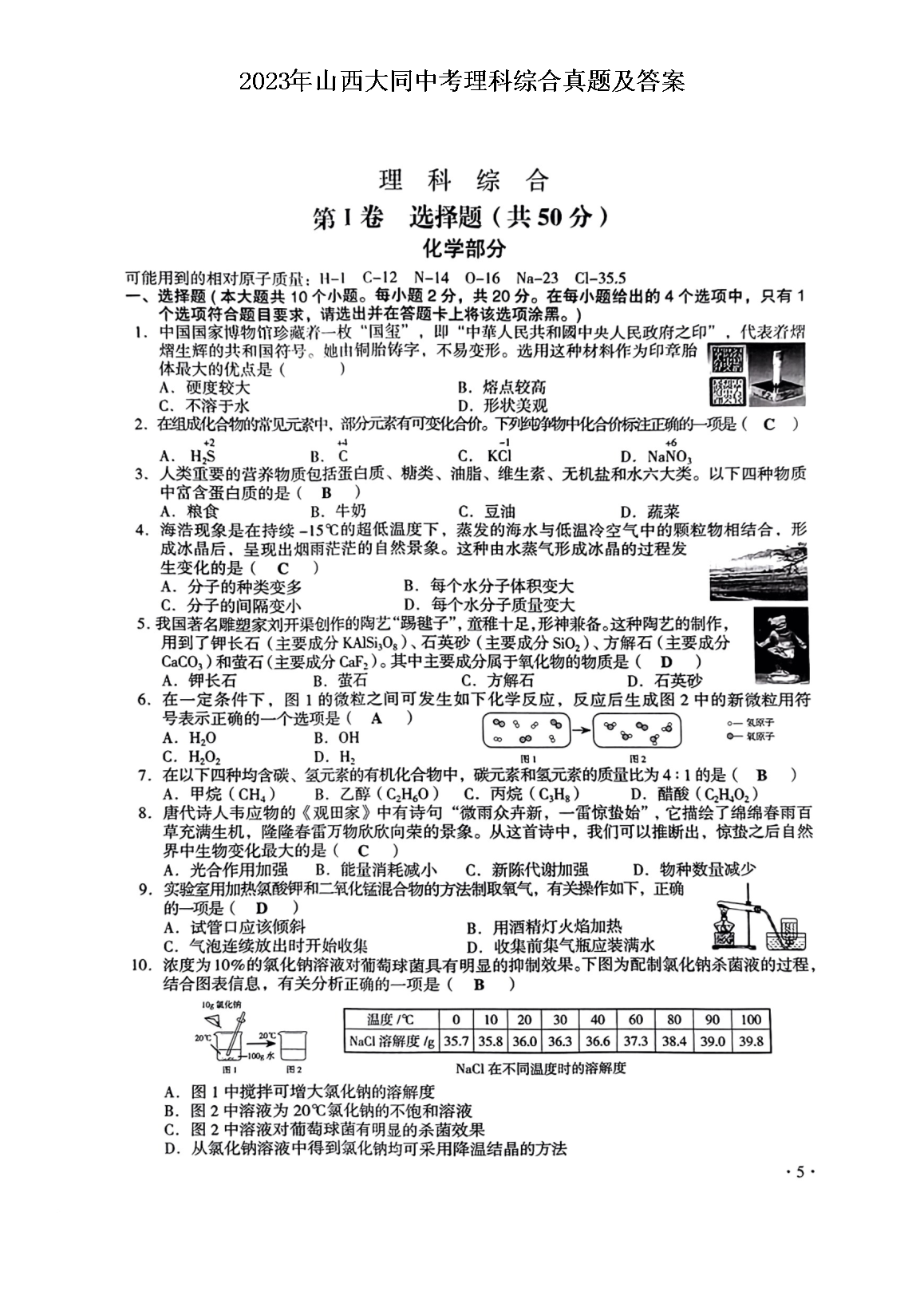 2023年山西大同中考理科综合真题及答案(图片版)06-26