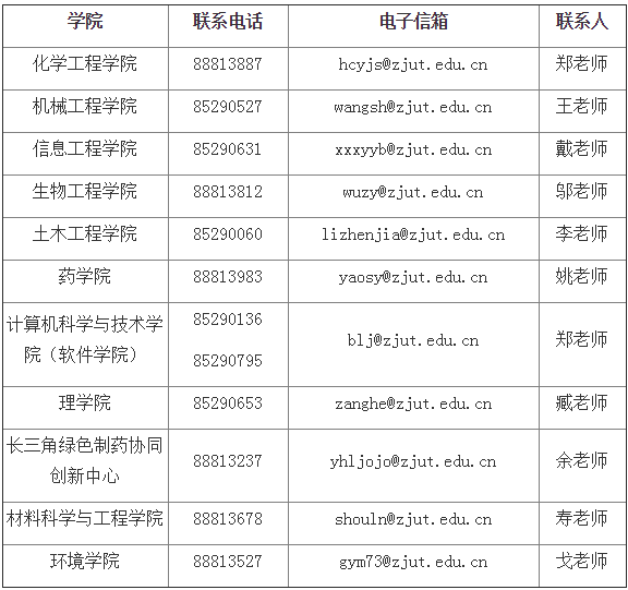 关于您所报考专业的具体问题可向各学院咨询(区号0571):