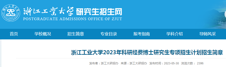 浙江工业大学2023年科研经费博士研究生专项招生计划招生简章06-03