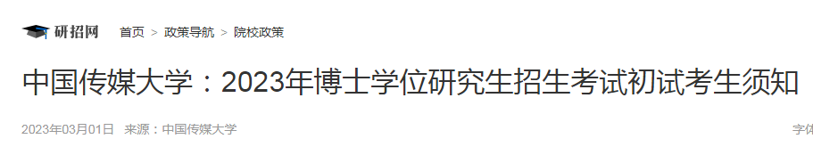 北京中国传媒大学2023年博士学位研究生招生初试考生须知(考试时间3月6日)03-03