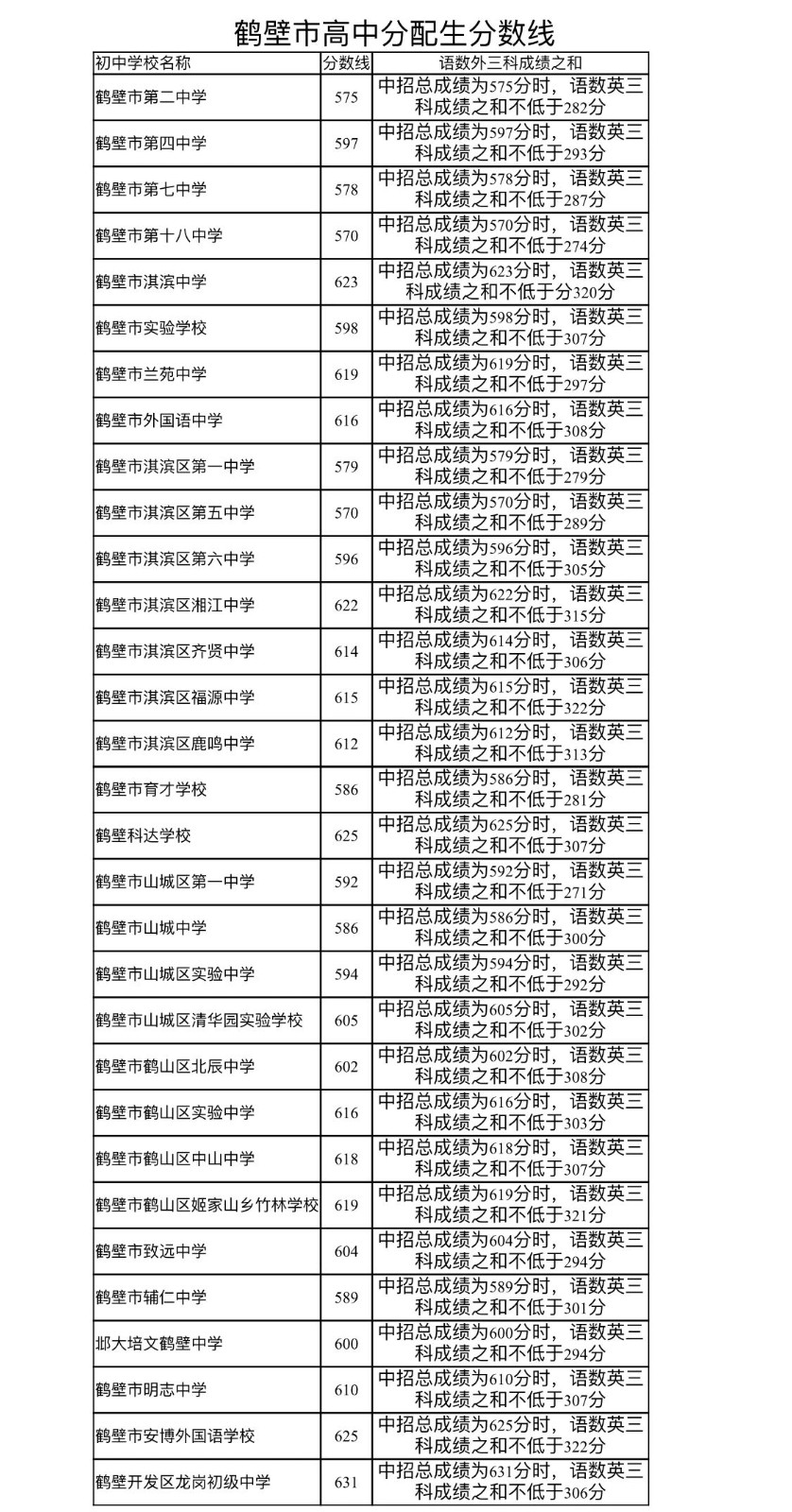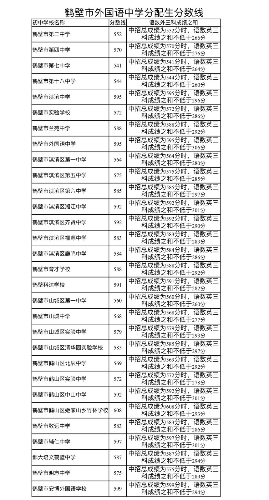 2023年河南鹤壁市高中、鹤壁市外国语中学分配生分数线确定07-22