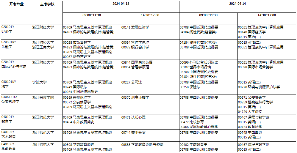 2024年4月浙江省自学考试开考课程(理论课)公布08-31