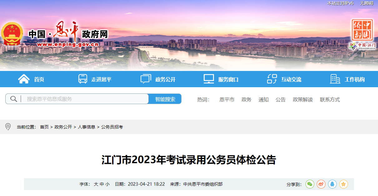 【#公务员考试# 导语】©文档大全网从恩平市政府门户网站了解到,2023年广东恩平市考试录用公务员体检公告现已公布,相关事宜如下: