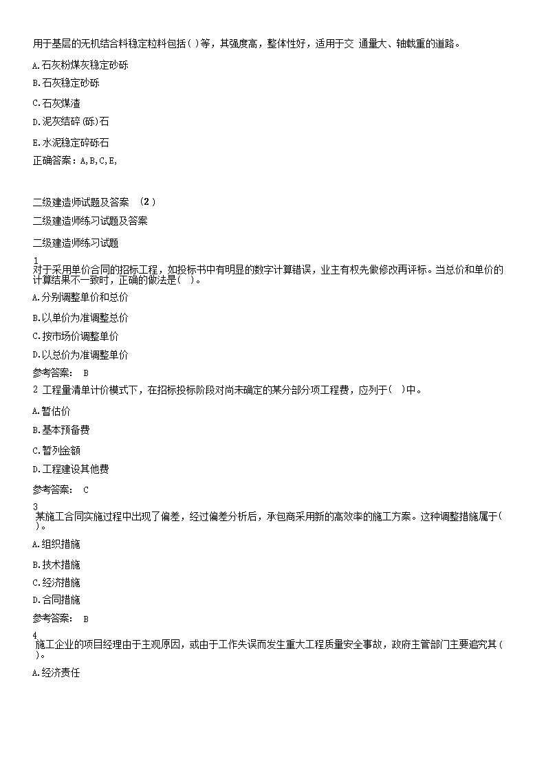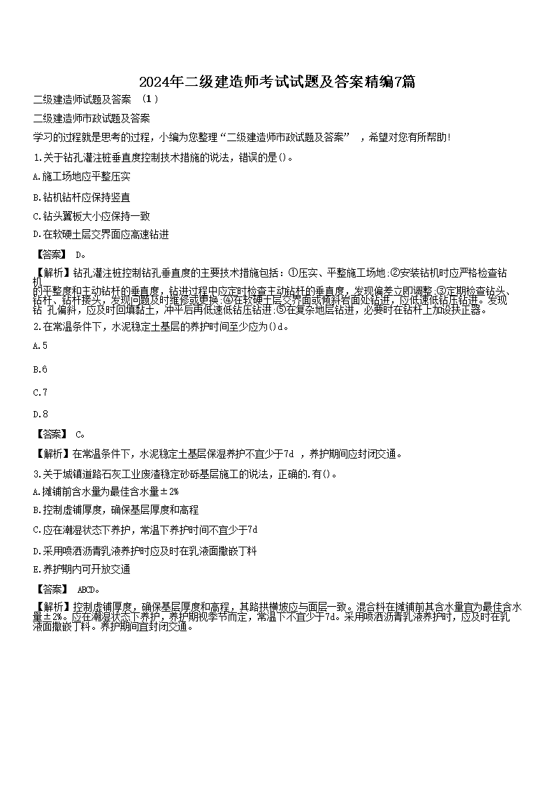 【文档预览】 文档大全网整理发布2024年二级建造师考试试题及答案精编7篇(Word版),前五页预览如下: