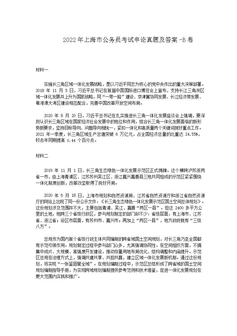 2022年上海市公务员考试申论真题及答案-B卷(Word版)06-29