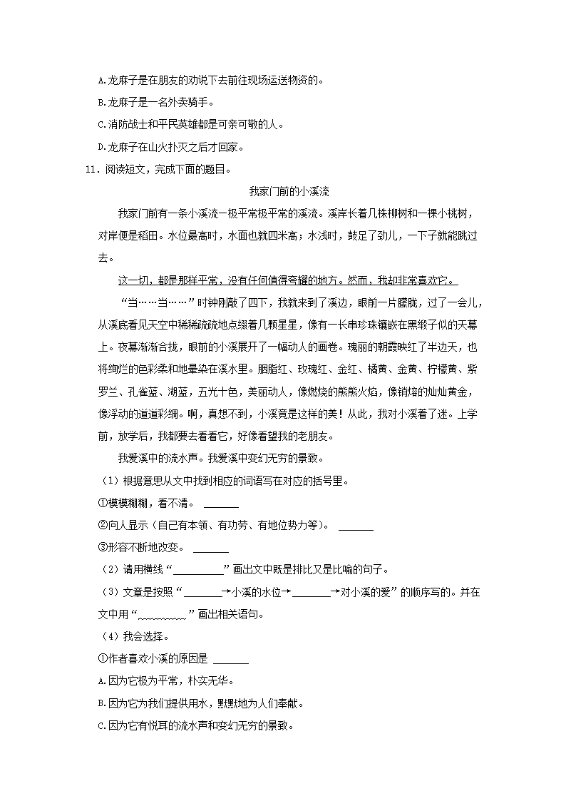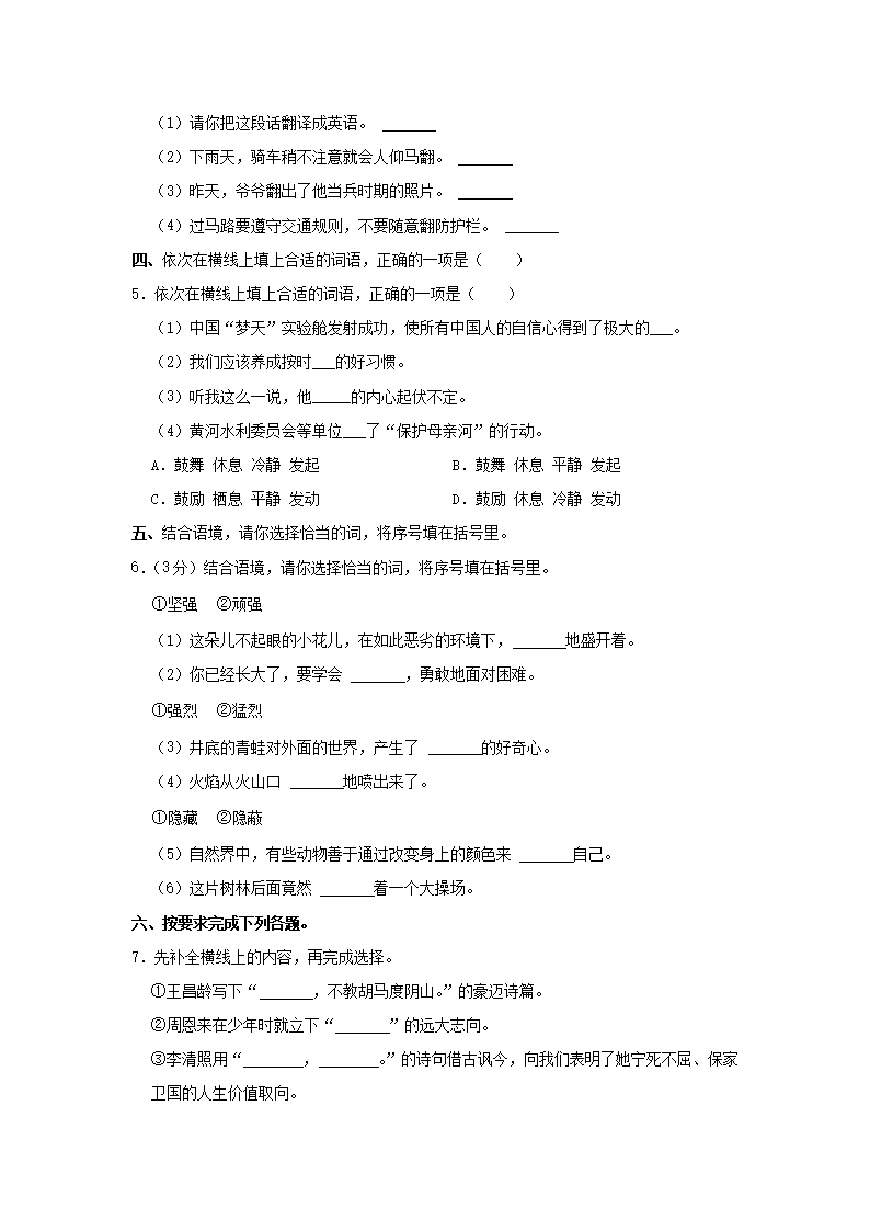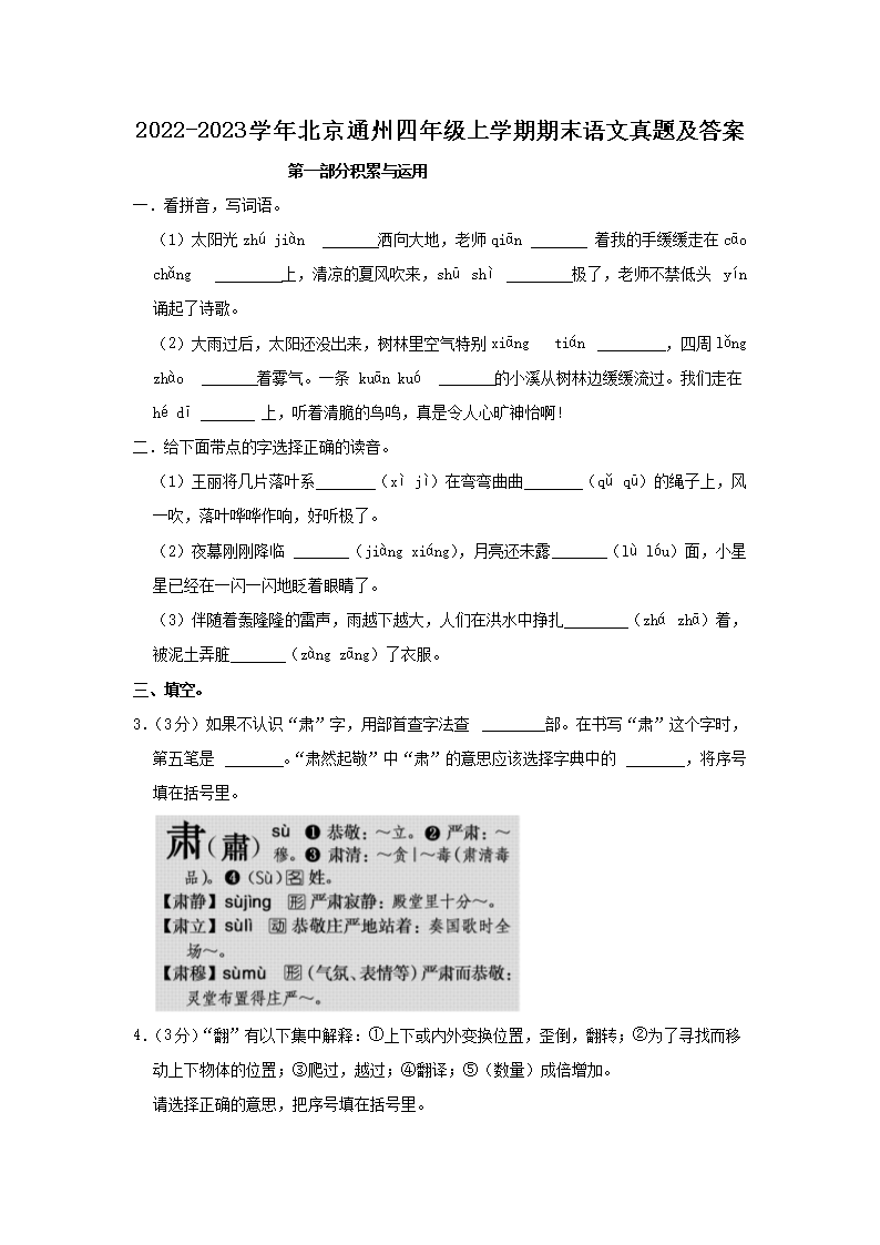 2022-2023学年北京通州四年级上学期期末语文真题及答案(Word版)07-04