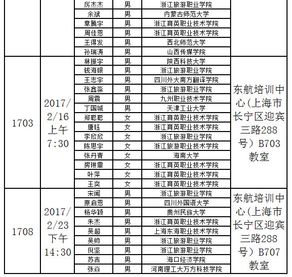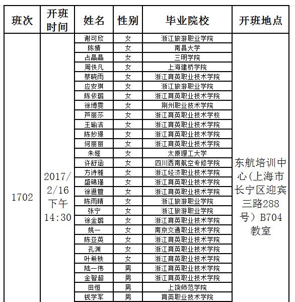 根据公司乘务员、航空安全员招聘流程,将分批公布乘务职业资格培训名单,现将2月参加培训名单公布如下: