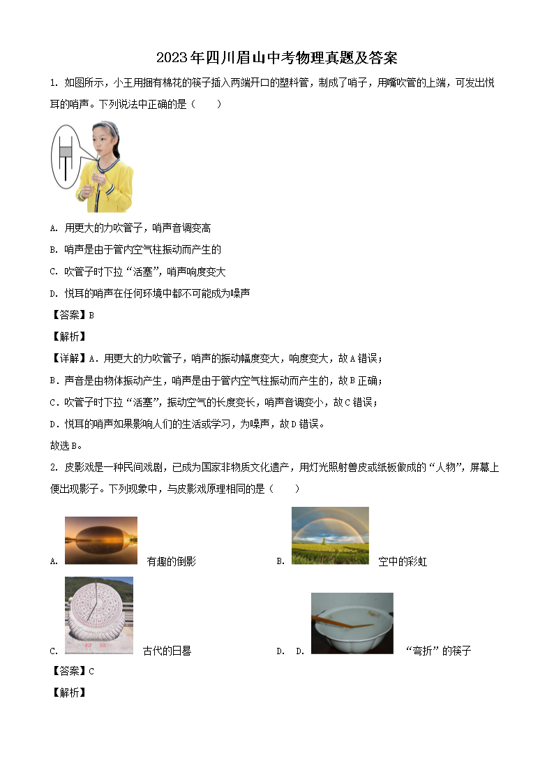 【文档预览】 文档大全网整理发布2023年四川眉山中考物理真题及答案(Word版),前五页预览如下: