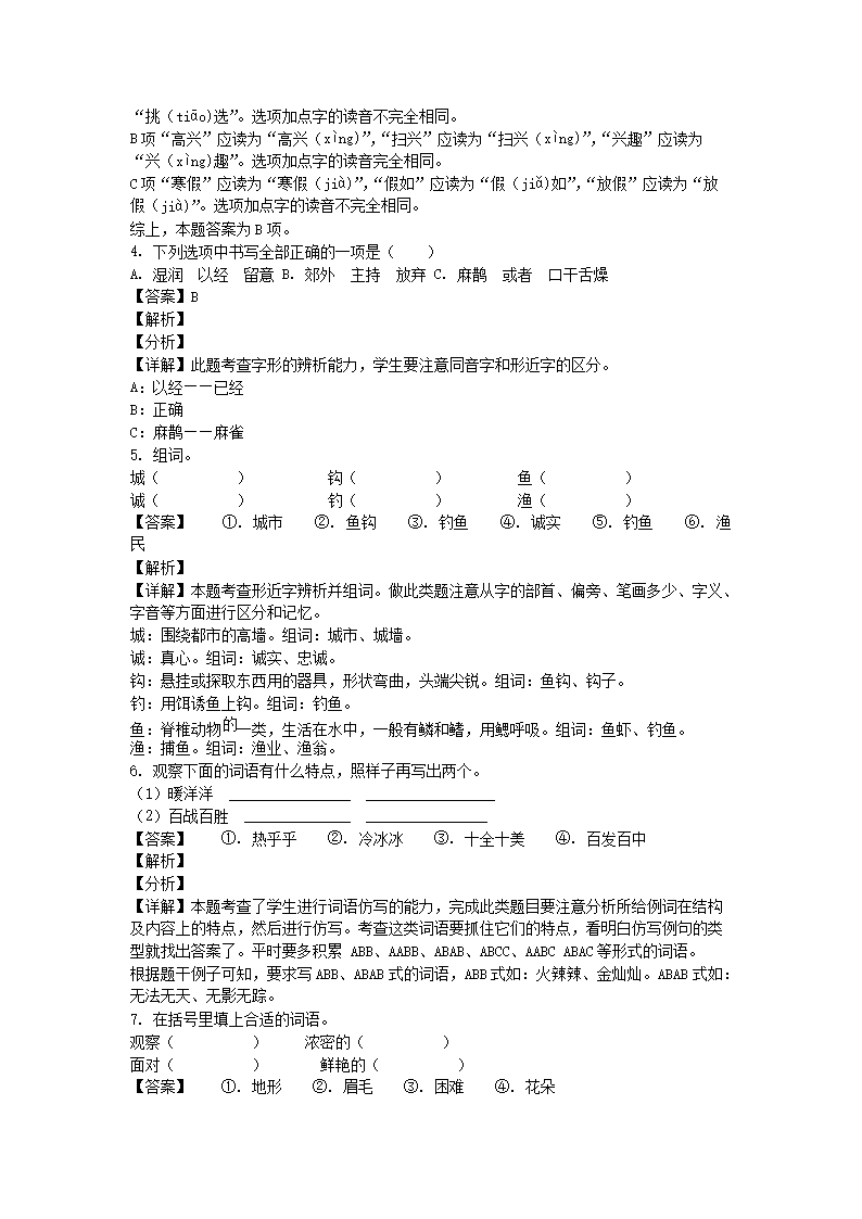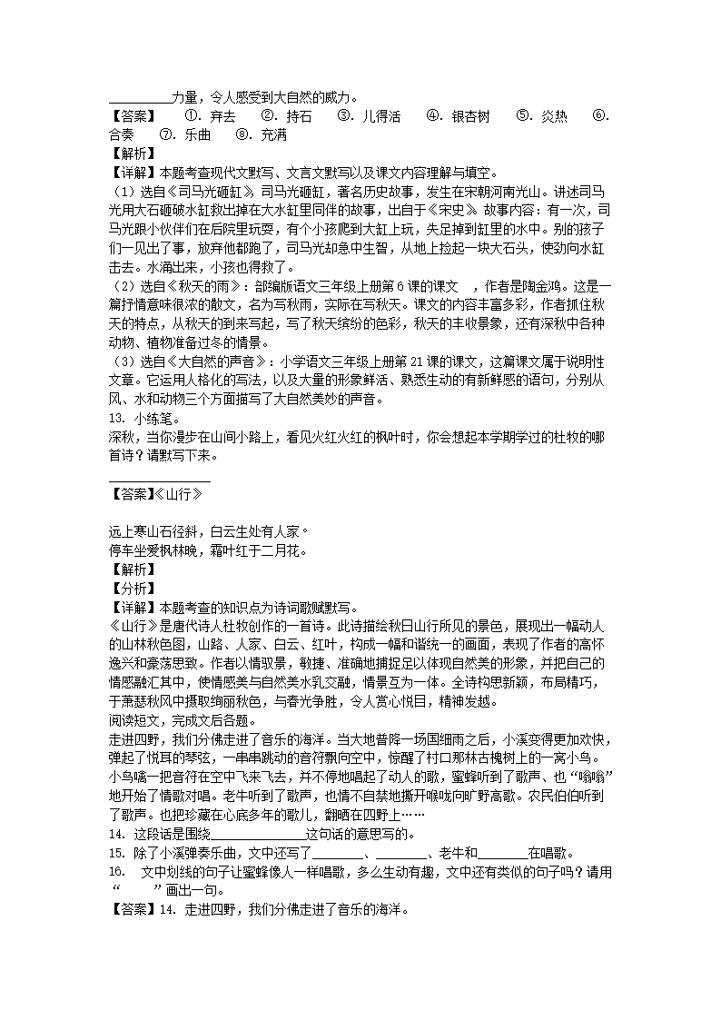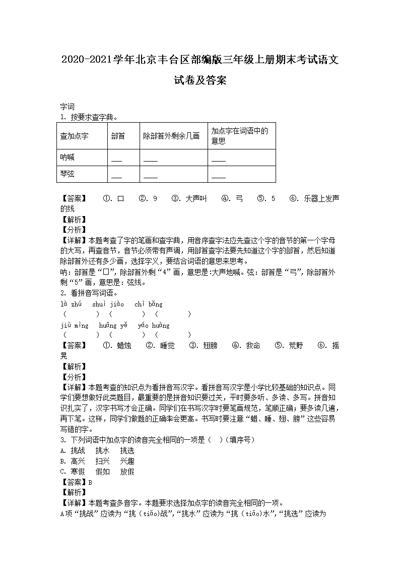 2020-2021学年北京丰台区部编版三年级上册期末考试语文试卷及答案(Word版)07-28