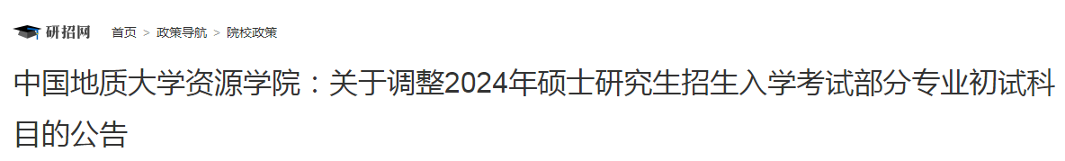 湖北:中国地质大学资源学院调整2024年硕士研究生招生入学考试部分专业初试科目公告07-20