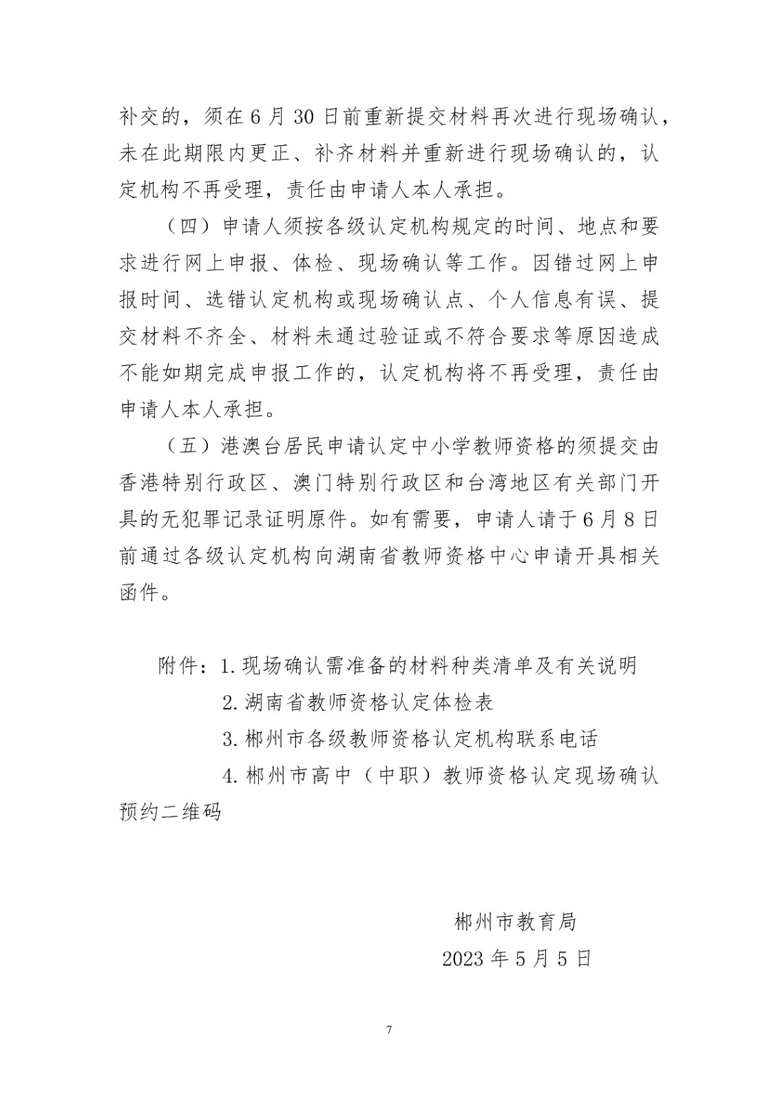 湖南郴州市2023年上半年高中(中职)教师资格认定有关事项公告[申报时间6月8日起]05-08