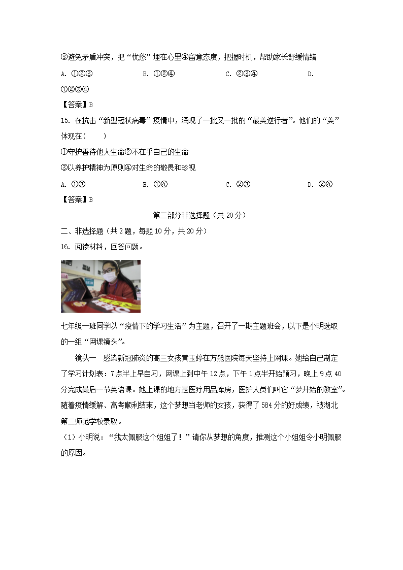 2020-2021学年广东深圳光明区七年级上册期末道德与法治试卷及答案(Word版)09-16