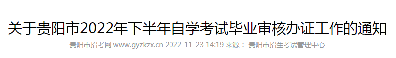 原文标题:关于贵阳市2022年下半年自学考试毕业审核办 证工作的通知