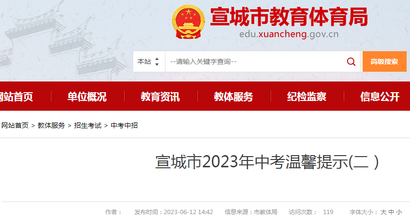 原文标题:宣城市2023年中考温馨提示(二)