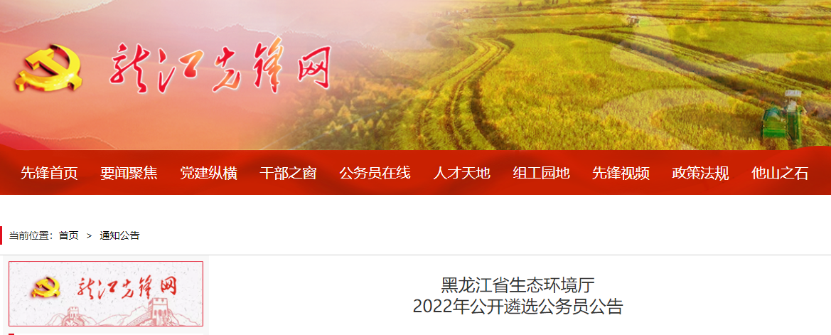 【#遴选# 导语】©文档大全网从龙江先锋网了解到,2022年黑龙江省生态环境厅遴选公务员4人,报名时间:12月29日-1月5日,相关事宜如下: