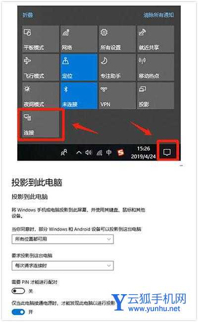然后我们打开电脑,点击右下角的气泡框,选择【连接】-【投影到此电脑】,注意哦,手机和电脑必须连接同一个Wifi,这样才能连接成功哦!