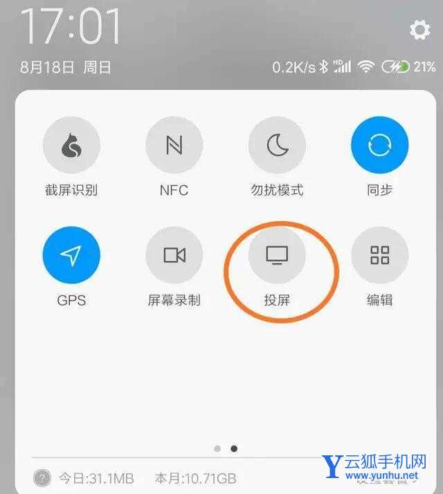 在最新的MIUI 11系统中,我们只要下拉通知栏,就可以在这里找到投屏功能,点击它~