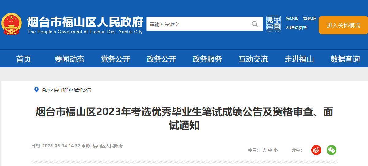 【#选调生# 导语】©文档大全网从福山区人民政府了解到,2023年山东烟台市福山区考选优秀毕业生笔试成绩公告及资格审查、面试已公布,相关事宜如下: