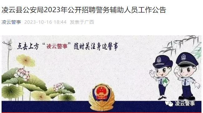 2023年广西百色凌云县公安局招聘警务辅助人员工作公告(10人)10-18