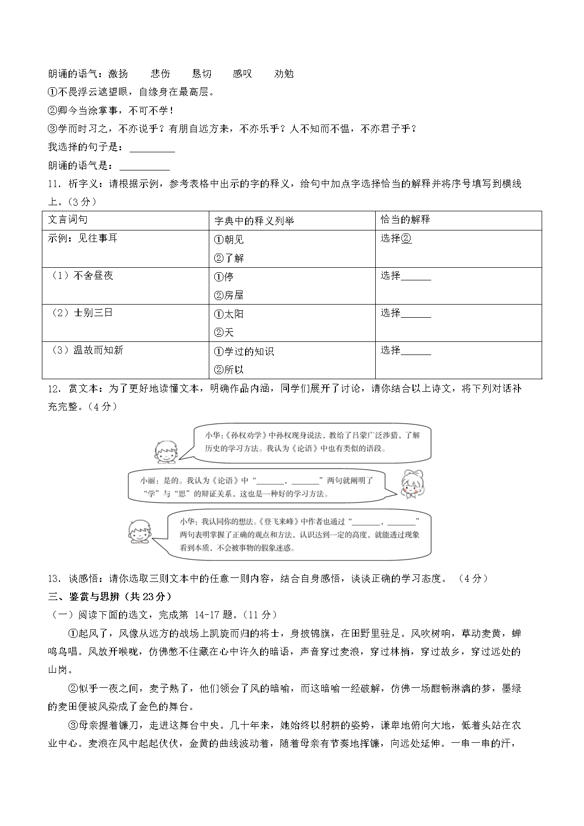 2023年青海黄南中考语文真题及答案(Word版)07-22