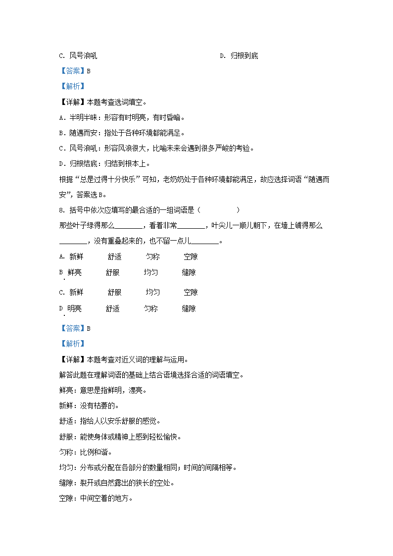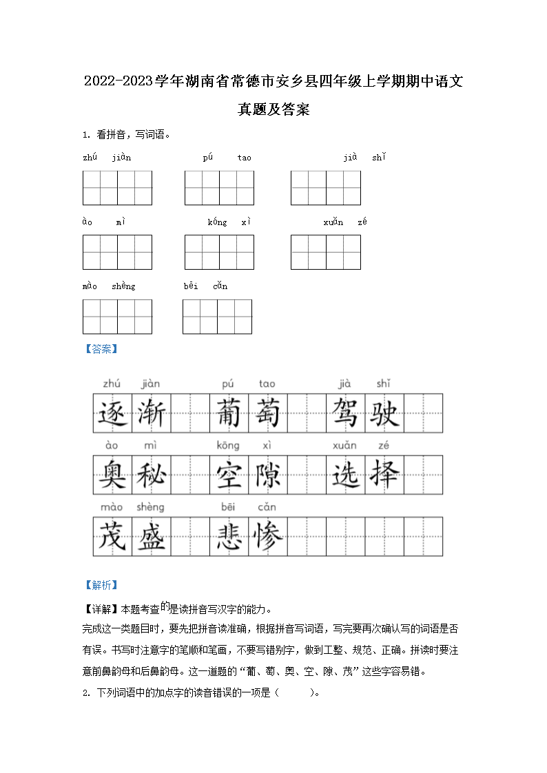 2022-2023学年湖南省常德市安乡县四年级上学期期中语文真题及答案(Word版)10-24