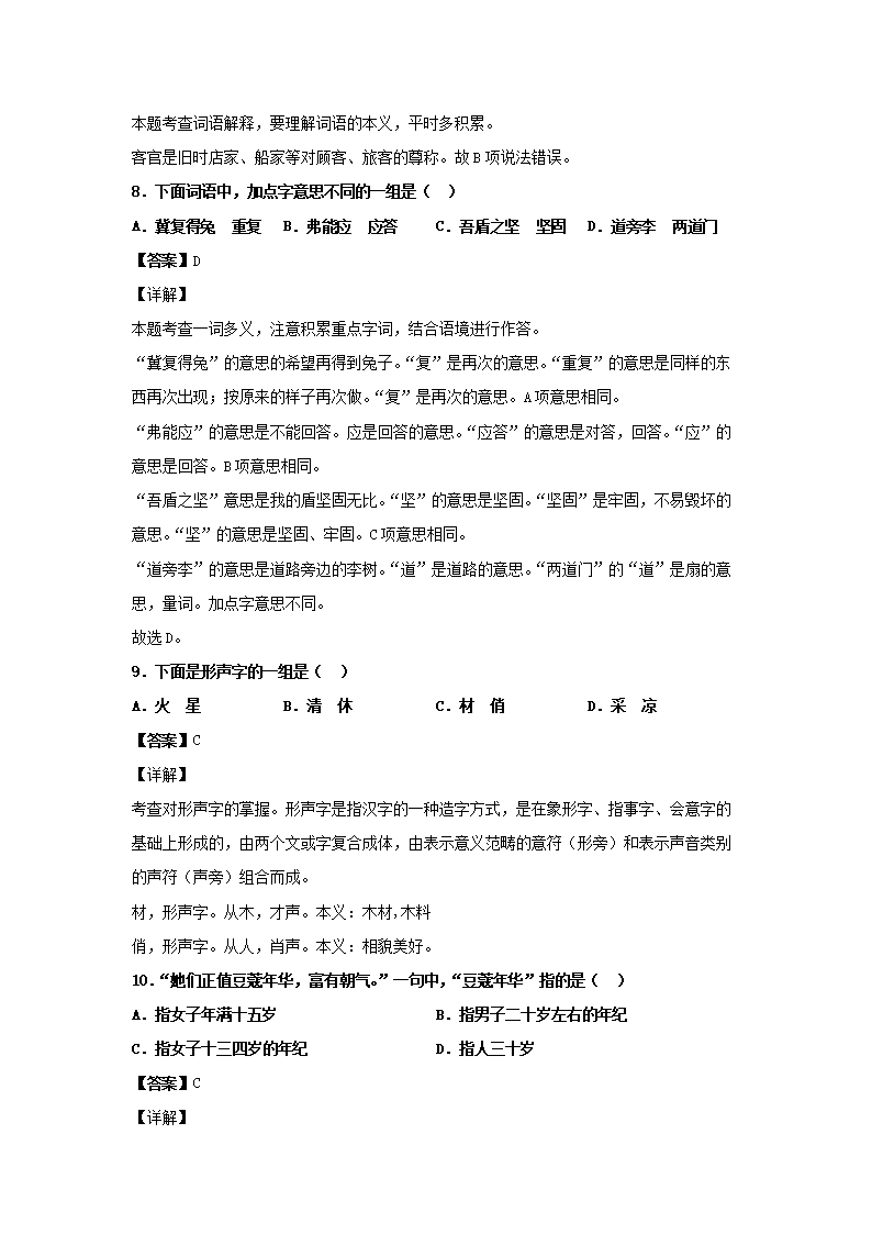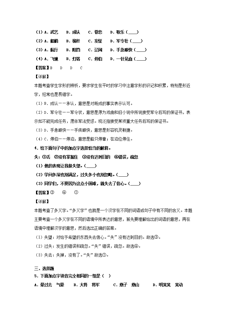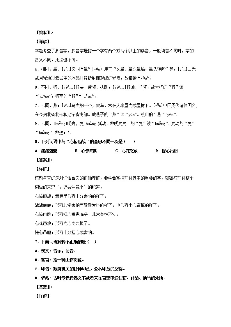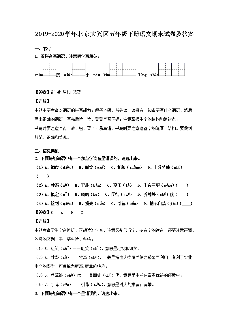 2019-2020学年北京大兴区五年级下册语文期末试卷及答案(Word版)07-29
