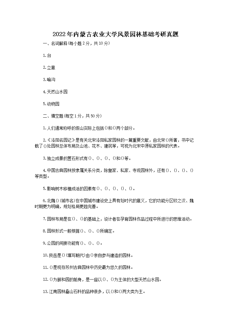 2022年内蒙古农业大学风景园林基础考研真题(Word版)07-06