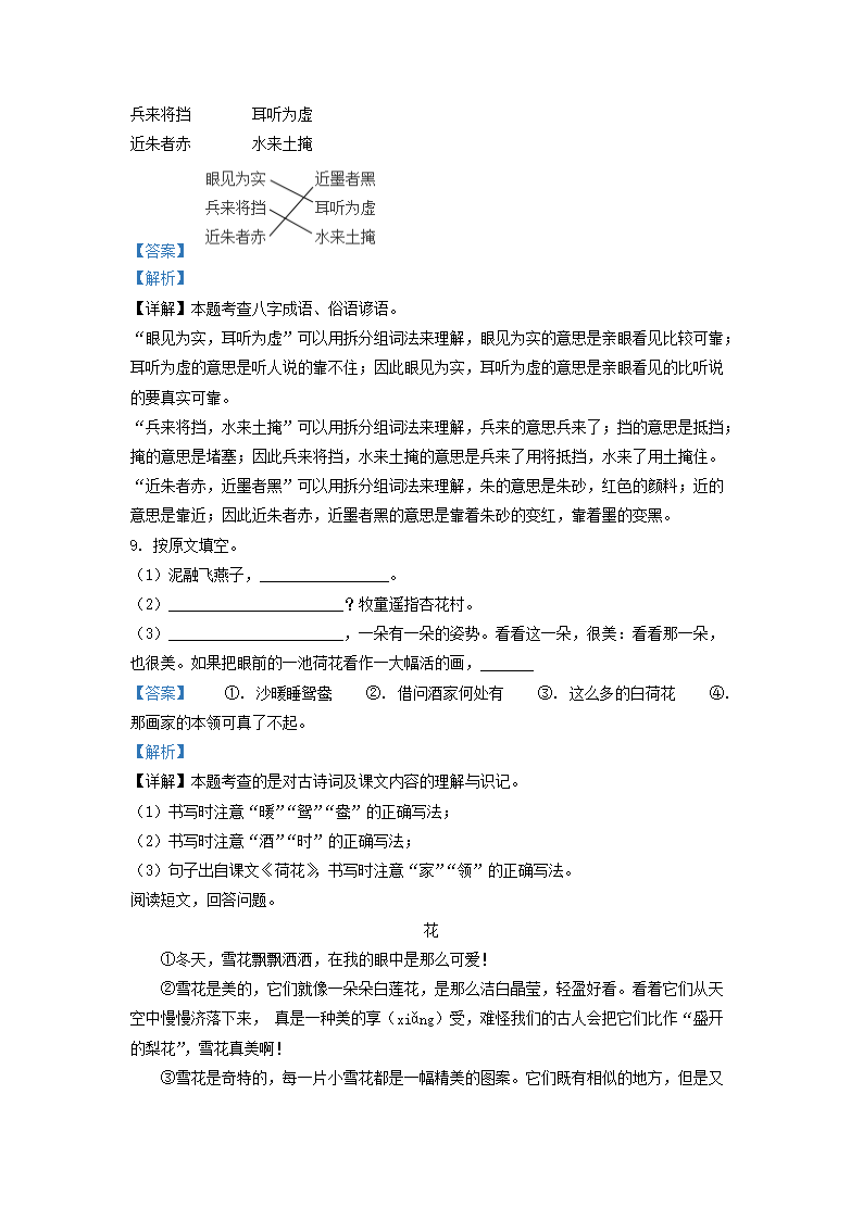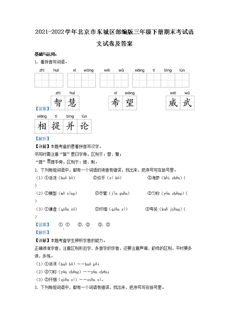 2021-2022学年北京市东城区部编版三年级下册期末考试语文试卷及答案(Word版)06-30