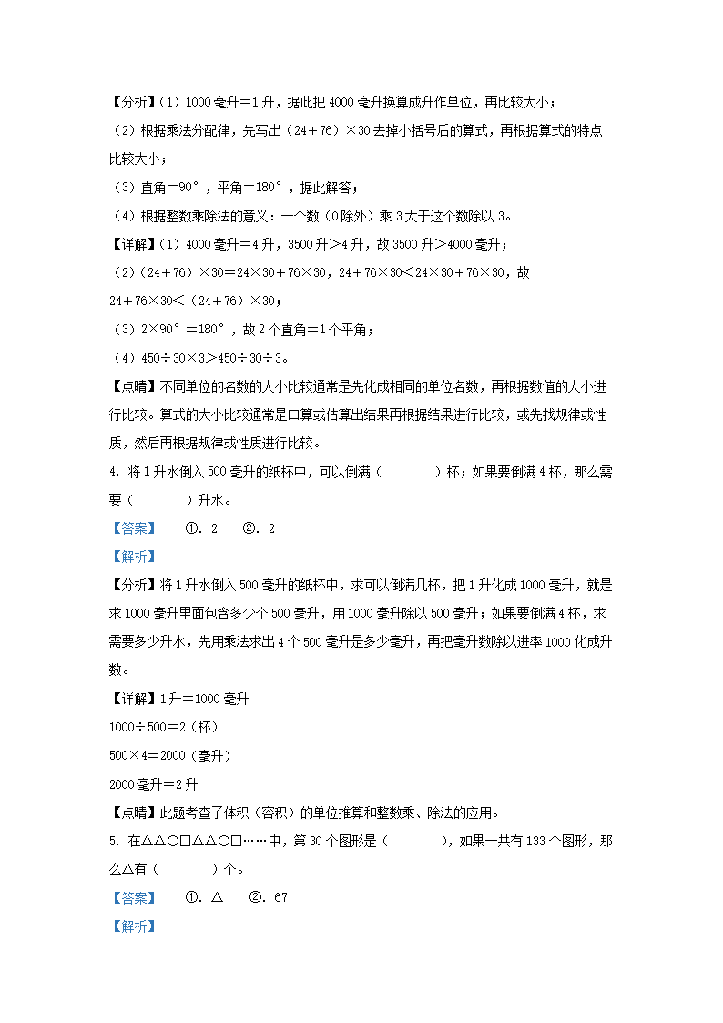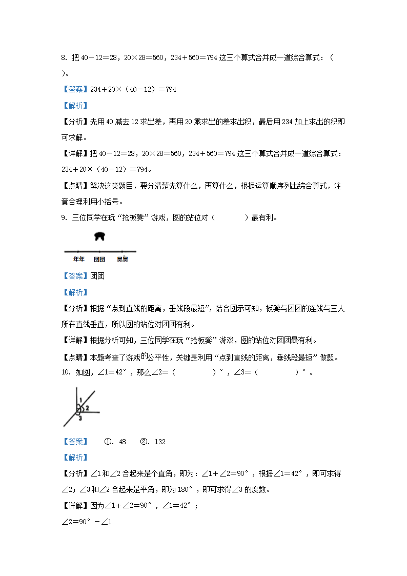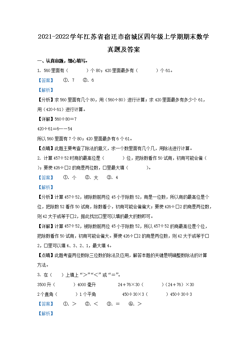 2021-2022学年江苏省宿迁市宿城区四年级上学期期末数学真题及答案(Word版)07-28