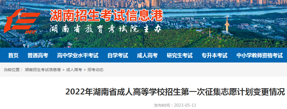 2022年湖南省成人高等学校招生第一次征集志愿计划变更情况05-12