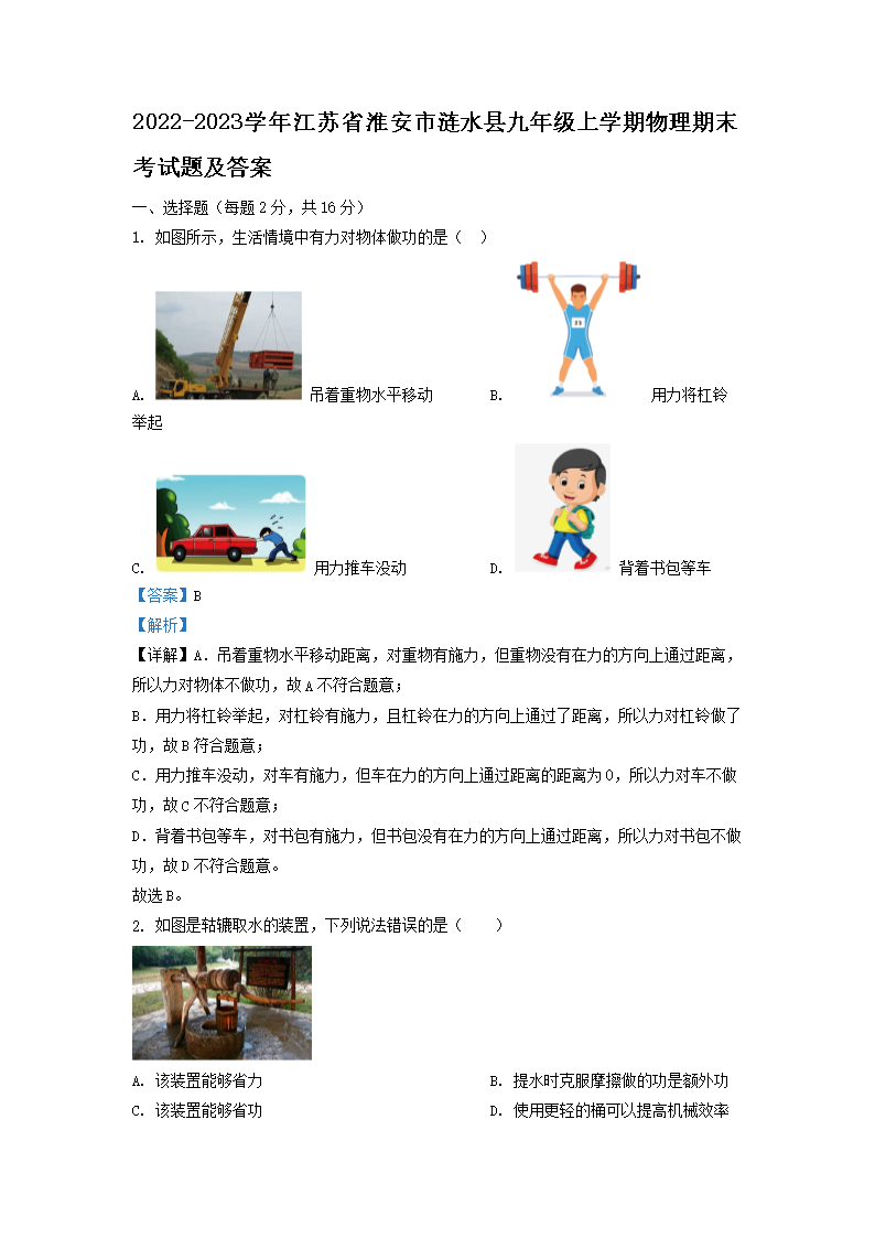 2022-2023学年江苏省淮安市涟水县九年级上学期物理期末考试题及答案(Word版)10-11