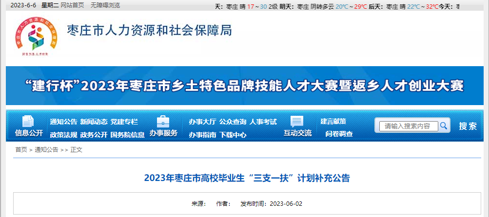 原文标题:2023年枣庄市高校毕业生“三支一扶”计划补充公告