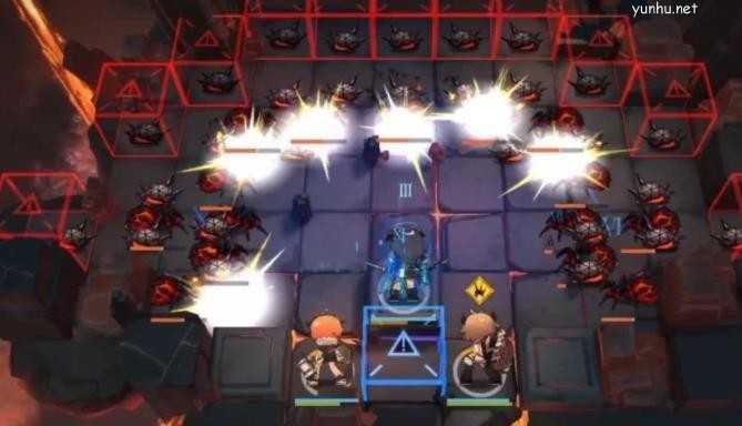 等cost够了以后在右侧布置第二个重装干员,套路和之前一样的,目前都不需要开技能,重装只要防御档好了就OK。