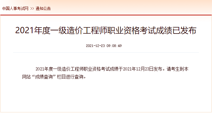 点击进入:2021年福建一级造价工程师考试成绩查询查分入口